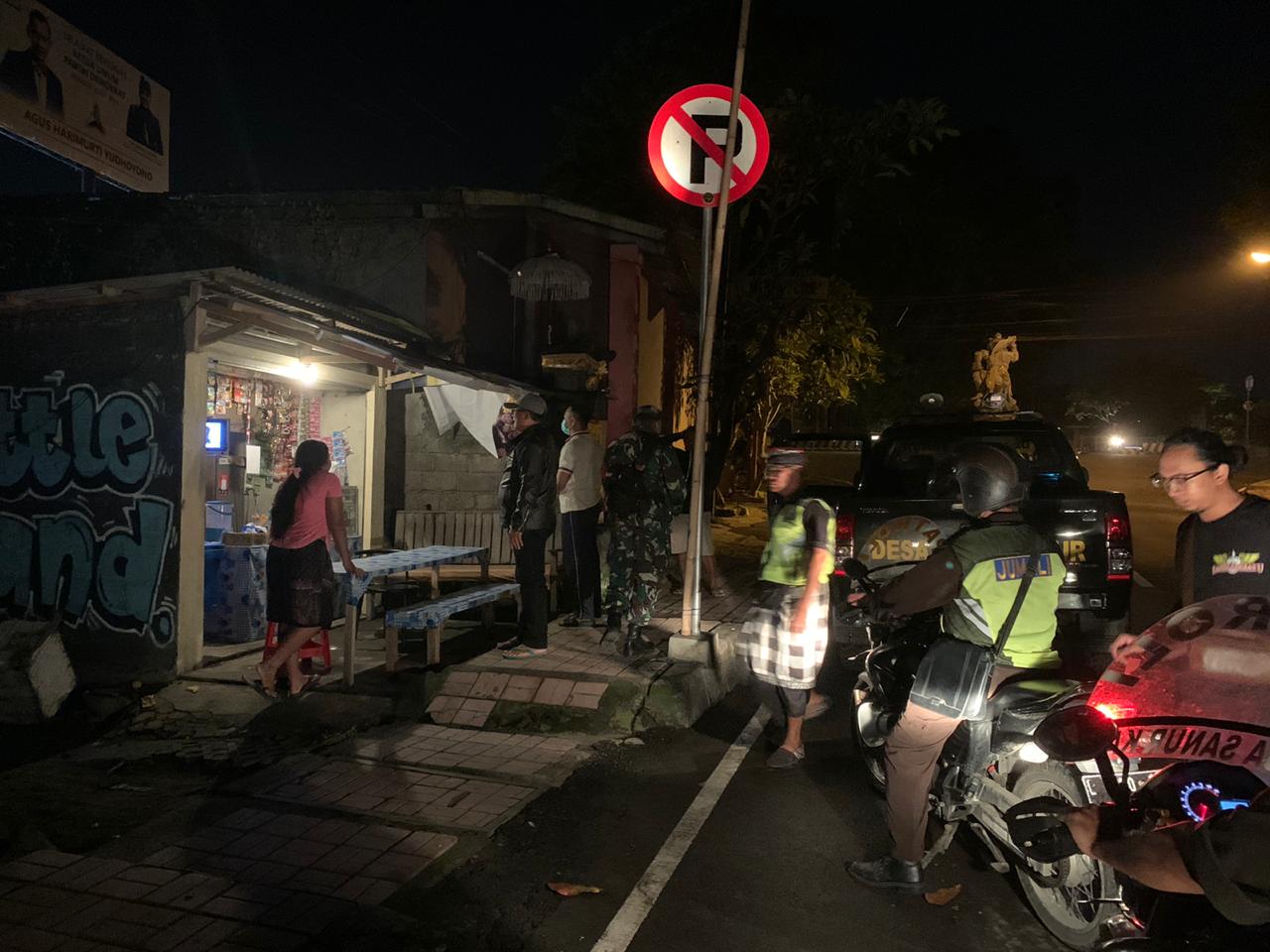 Operasi gabungan di lingkungan tegal asah desa sanur kaja… mensosialisasikan perwali agar seluruh warung dan cafe tutup jam 21.00