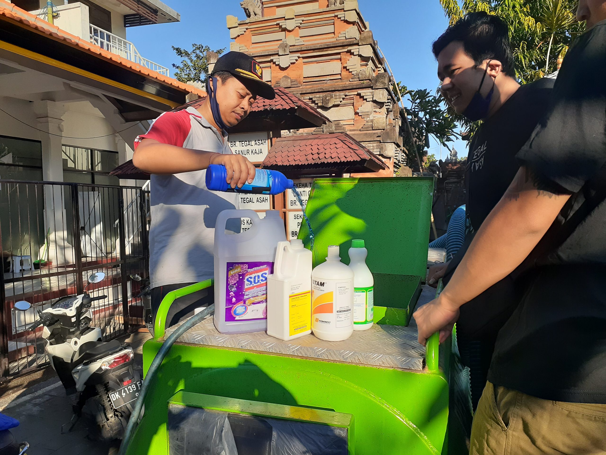 by SuryasaPosted on April 3, 2020April 3, 20200 Comments Penyemprotan desinfektan secara swadaya di dusun tegal asah, 2 april 2020 Kepala dusun, STT dan pecalang banjar tegal asah melakukan penyemprotan desinfektan secara swadaya guna memutus rangkaian penularan covid-19